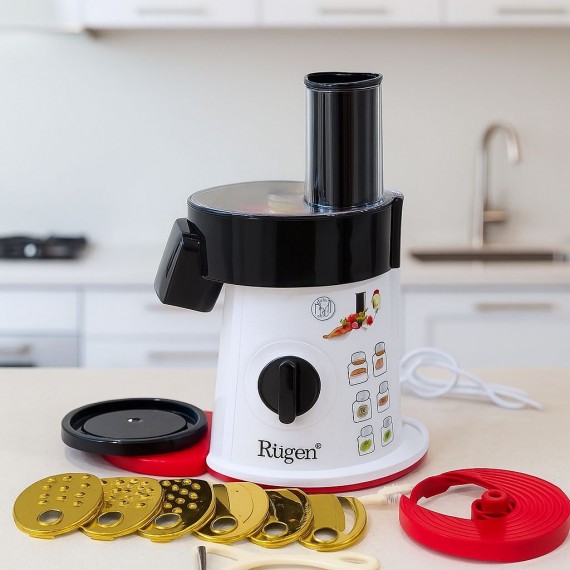 سالاد ساز و رنده برقی روگن آلمان مدل Rü-1650، یکی از پیشرفته‌ترین و خوش‌ساخت‌ترین دستگاه‌های آماده‌سازی مواد غذایی از برند معتبر ROGEN Germany است که با طراحی مهندسی و دوام بالا، برای آشپزخانه‌های مدرن ساخته شده است. این مدل با توان واقعی ۲۰۰ وات و عملکرد دو سرعته، قادر است انواع میوه‌ها، سبزیجات، پنیر و صیفی‌جات را با دقت و سرعت بالا خرد، رنده یا ورقه کند. بدنه‌ی سالاد ساز برقی روگن مدل RU1650 از ABS فشرده و ضدضربه ساخته شده که مقاومت فوق‌العاده‌ای در برابر فشار و حرارت دارد. وجود ۶ تیغه تیتانیومی حرفه‌ای شامل رنده ریز و درشت، تیغه ورقه‌ای، رشته‌ساز، دیسک خلال‌کن و اسلایسر، امکان تهیه سالادهای متنوع و تزئینی را در کمترین زمان فراهم می‌کند.